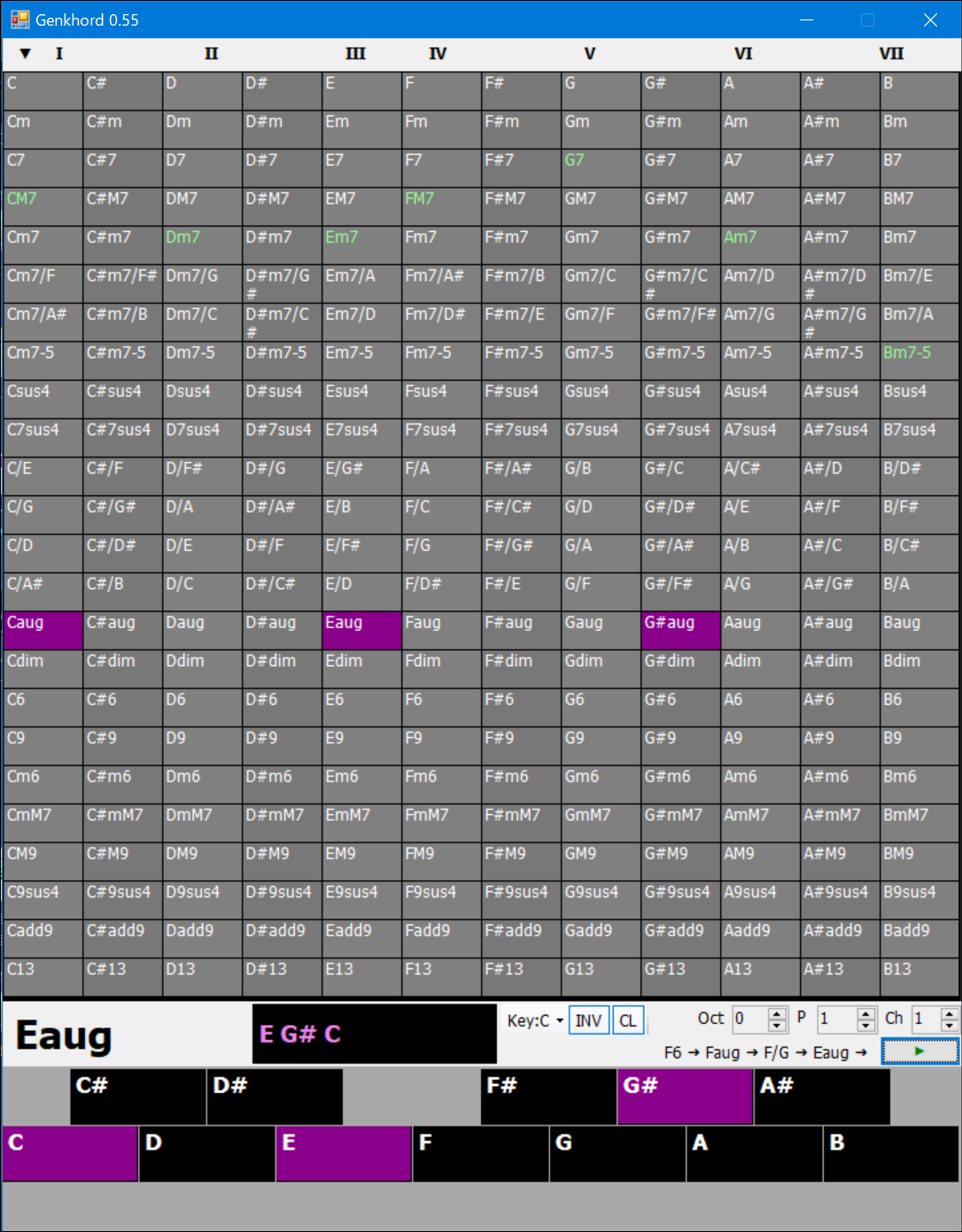 コードの構成音からコードネームを検索する機能を追加した。ウィンドウ最下部の背景か、構成音表示をクリックすると検索モードに入る。キーボードをクリックするとコードネームを検索する。